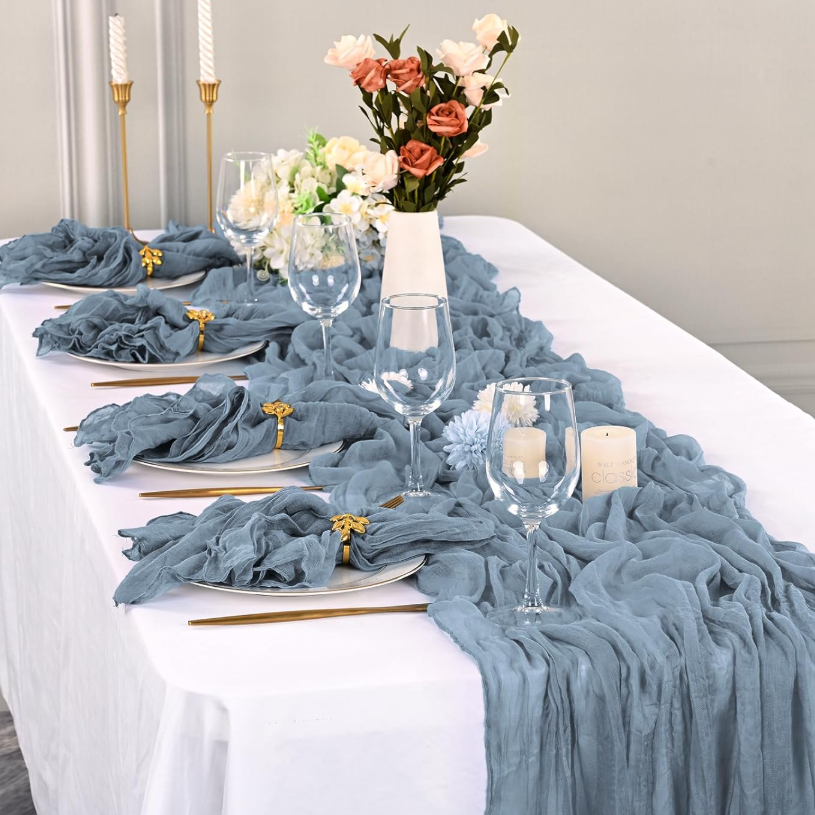 Start Tischdekoration Servietten / Tischläufer Gaze Tischläufer staubiges blau