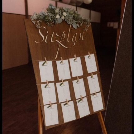 Tischplan Finde deinen Platz, Holzschriftzug